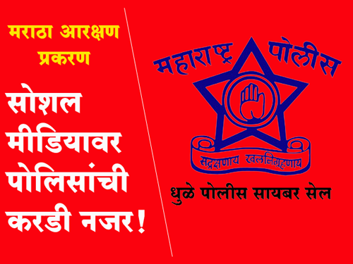 धुळे जिल्हा पोलीस दलाने प्रसिद्धीला दिलेल्या पत्रकात म्हटले आहे की, जालना येथे 31 ऑगस्ट रोजी मराठा आरक्षणाच्या आंदोलनात घडलेल्या घटनेच्या अनुषंगाने अफवा पसरविण्यात येत आहेत. सदर प्रकरणातील संबंधित दोषींवर प्रशासनाकडून योग्य ती कारवाई करण्यात येत आहे. कोणीही कोणत्याही सोशल मीडिया अकाउंटवर चुकीचे संदेश, अफवा, व्हिडिओ, पोस्ट, छायाचित्रे प्रसारित करू नये किंवा स्टेटस ठेवू नये, असे आवाहन धुळे जिल्हा पोलीस दलातर्फे करण्यात आले आहे. महाराष्ट्र सायबर तसेच धुळे जिल्हा पोलीस दलाच्या सायबर सेलमार्फत अशा प्रकारच्या सोशल मीडिया अकाउंट ग्रुपवर सतत निगराणी ठेवण्यात येत आहे. अशा प्रकारे आक्षेपार्ह संदेश, व्हिडिओ, पोस्ट, छायाचित्रे सोशल मीडियाद्वारे प्रसारित करणाऱ्या व्यक्तींच्या विरोधात भारतीय दंड संहिता व माहिती तंत्रज्ञान कायद्यान्वये कठोर कारवाई करण्यात येईल, असा इशारा पोलीस अधीक्षक संजय बारकुंड यांनी दिला आहे.