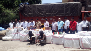 महाराष्ट्र राज्यात प्रतिबंधित असलेला गुटखा व पान मसाला मिळून आला. त्यात ४ लाख ३२ रूपये किमतीचा आरएमडी पान मसाला, २ लाख ८८ हजार रूपये किमतीचा एम सेन्टेड तंबाखू गोल्ड, ६ लाख १५ हजार ६०० रूपये किमतीचा रजनीगंधा पान मसाला, १ लाख ५५ हजार ५२० रूपये किमतीचा तुलसी रॉयल लाल पाणी जर्दा, २ लाख ६१ हजार २६० रूपये किमतीचा विमल पान मसाला, २९ हजार ४०० रूपये किमतीची तंबाखू, १३ हजार ५०० रूपये किमतीची डबल ब्लॅक १८ प्रीमियम तंबाखू, १ लाख ४४ हजार रुपये किमतीचा राजश्री पान मसाला, ३८ हजार ८८० रूपये किमतीची चैनी खैनी प्रीमियम फिल्टर पाऊच, ८ लाख ८८ हजार ८५८ रूपये किमतीचा परचूटन माल, १५ लाख रुपयांचा आयशर ट्रक असा एकूण ४३ लाख ६७ हजार ९२८ किमतीचा माल जप्त करण्यात आला.