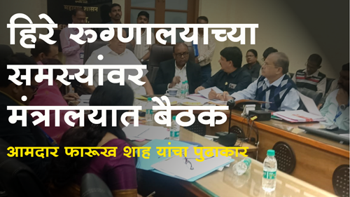 याबाबत आ. फारुख शाह यांनी हसन मुश्रीफ यांना भेटून या समस्याबाबत बैठक आयोजित करणेबाबत मागणी केली होती. त्यासंदर्भात हिरे मेडिकल रुग्णालयातील वर्ग ४ ची रिक्त पदे, हाउस कीपिंग, कायमस्वरूपी अधिष्ठाता नेमणूक करणे. C.T.Scan मशिन आणि M.R.I. मशिन खरेदी करणे या प्रमुख सामस्यांबाबत चर्चा झाली. तातडीने C.T.Scan मशिन आणि M.R.I. मशिन खरेदी करण्याचे आदेश हसन मुश्रीफ यांनी दिले. तसेच महाविद्यालयात तत्काळ कायम स्वरूपी अधिष्ठाता देण्याची मागणी देखील मान्य करण्यात आली असून याबाबतची कार्यवाही तातडीने पार पाडावी असे आदेश देण्यात आले.