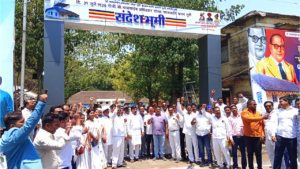 डॉ. बाबासाहेब आंबेडकर यांचा वैचारिक वारसा लाभलेल्या संदेश भूमिसाठी महाले प्रतिष्ठानतर्फे भव्य प्रवेशद्वार उभारण्यात आले आहे. या प्रवेशद्वाराचे जयंतीनिमित्त लोकार्पण करण्यात आले. यावेळी महाले प्रतिष्ठानचे सतिष महाले, संदेश भूमीचे प्रणेते आनंद सैंदाणे यांच्यासह बाबासाहेबांचे अनुयायी मोठ्या संख्येने उपस्थित होते.