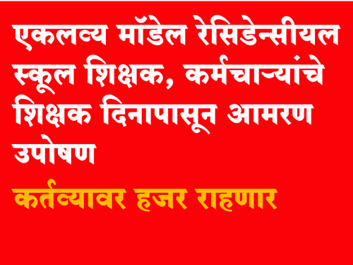 या सर्व परिस्थितीपुढे हतबल होऊन दिनांक 5 सप्टेंबर 2023 पासून महाराष्ट्रातील सर्व एकलव्य शाळेवर कर्तव्यावर हजर राहून आमरण उपोषण करणार आहेत.