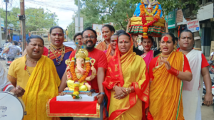 आज सर्वत्र गणपती बाप्पा मोरया… मंगलमूर्ती मोरया… आले रे..आले… गणपती आले… चा जयघोष ऐकायला मिळाला. ढोल ताशाच्या गजरात वाजत-गाजत घरोघरी गणपती बाप्पांचे उत्साहात स्वागत करण्यात आले. शिवसेनेचे महानगर प्रमुख डॉ. सुशील महाजन, डॉ. निशा महाजन, दीपक माळी, आझाद नगर पोलीस ठाण्याचे पोलीस निरीक्षक नितीन देशमुख, पोलीस मुक्तार मन्सुरी, जितेंद्र परदेशी, काँग्रेसचे प्रदेश सरचिटणीस युवराज करनकाळ, प्रीतम करनकाळ, उद्योजक संजय अग्रवाल, सुहास अंपळकर, महेश बाविस्कर, संतोष बिरारी, कविता बिरारी, आर्यन बिरारी, गणेश लाडे, संजय पाटोळे, मानसी लाडे, विशाल यरडावकर, हरिभाऊ घोटाळे, पोलीस कर्मचारी प्रवीण पाटील, सशमंडळ अधिकारी सागर नेमाने, निलेश नेमाने, नेमाने परिवार, कॉन्ट्रॅक्टर प्रसाद जोशी परिवार, अग्रवाल परिवार, कैलास अग्रवाल, राजू अग्रवाल, हर्षल अग्रवाल, नाना अग्रवाल, सचिन अग्रवाल, मनोहर शर्मा, प्रीतम अग्रवाल यांच्यासह शहरातील असंख्य भाविकांनी गणेश मूर्तीची मिरवणूक काढून मंडळात तसेच घरोघरी स्थापना केली.