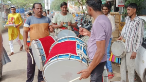 मुस्लिम बांधवांच्या ढोल ताशाच्या गजरात गणरायाचे स्वागत