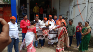 पत्रकार परिषद संपल्यानंतर कैलास चौधरी यांच्यासह राष्ट्रवादीच्या पदाधिकारी व कार्यकर्त्यांनी पडळकर (Gopichand Padalkar) यांच्या प्रतिमेला कार्यालयाबाहेर जोडे हाणून निषेध नोंदविला. तसेच पडळकर यांच्या प्रतिमेचे बॅनर कार्यालयाच्या पायऱ्यांखाली ठेवत त्याचा पायतान म्हणूनही वापर केला.