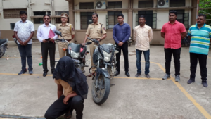 एलसीबीने पकडलेला दुचाकी चोर आणि हस्तगत केलेल्या दुचाकी