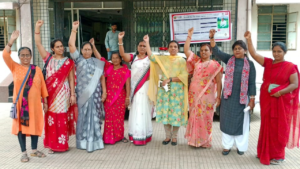 धुळे जिल्हाधिकारी कार्यालयाबाहेर निदर्शने करताना महिला सामाजिक कार्यकर्त्या