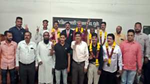 धुळे : जिल्हा मराठी पत्रकार संघाच्या द्वैवार्षिक निवडणुकीत पत्रकार संघाच्या अध्यक्षपदी खान्देश मैदानचे संपादक मनोज उत्तमराव गर्दे तर उपाध्यक्षपदी दै. श्रमराज्यचे संपादक अतुल मनोहर पाटील, ग्रामिण उपाध्यक्षपदी अरुण सुकलाल धोबी यांची तर सरचिटणीपदी सचिन सुरेश बागुल, कोषाध्यक्षपदी तुषार दगडूलाला बाफना, प्रांतिक प्रतिनिधी म्हणून प्रकाश दगा शिरसाठ यांची निवड झाली आहे.