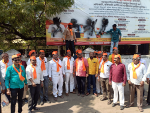 मराठा समाजाला आरक्षण देण्याचे आश्वासन पूर्ण केले जात नसल्याने मराठा समाजाच्या आंदोलकांनी मंगळवारी मुख्यमंत्री एकनाथ शिंदे, उपमुख्यमंत्री देवेंद्र फडणवीस, अजित पवार यांच्या फलकांना काळे फासत निषेध केला. ज्या तोंडाने मंत्र्यांनी आश्वासन दिले ते पूर्ण केले नाही म्हणून ती तोंडे आज काळे करण्याचे काम मराठा समाजाने केले, अशी संतप्त प्रतिक्रिया आंदोलक विनोद जगताप यांनी दिली.