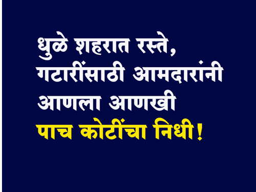 धुळे महानगरपालिका धुळे यंत्रणा असलेल्या या कामांच्या बाबतीत अंदाजपत्रके व इतर प्रशासकीय बाबी पूर्ण करून लवकरच कामांना सुरुवात केली जाणार आहे.