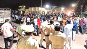 एसीबीच्या वाहनावर दगडफेक : यादरम्यान काहींकडून एसीबीचे वाहन आणि पोलिस गाड्यांवर दगडफेक करण्यात आली. जमावाकडून संबधित ‘पोलिस निरीक्षक हे भ्रष्ट अधिकारी आहेत’, ‘निष्पाप लोकांवर खोटे गुन्हे दाखल ‘ करतात” असे आरोप करून घोषणाबाजी केली जात होती. दरम्यान, पोलिस ठाण्याच्या अधिकारी-कर्मचारी आणि नवापूर शहरातीरल ज्येष्ठ नागरिक तसेच माजी लोकप्रतिनिधींनी भेटी देत नागरिकांसोबत संवाद साधत त्यांना घराकडे पाठवल्यानंतर परिस्थिती नियंत्रणात आली.