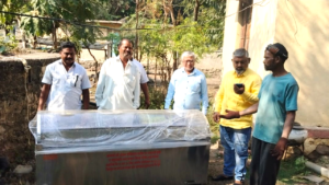 Dhule News झेडपी सदस्य संग्राम पाटील यांच्यातर्फे तीन गावांना शवपेटी