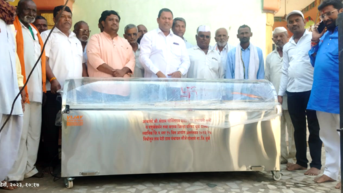 धुळे : जिल्हा परिषद सदस्य संग्राम गोविंदराव पाटील यांनी आनंदखेडे, गोताणे, सांजोरी या तीन गावांना शवपेटी दिली.